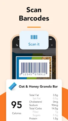 • Barcode Scanner – Scan food barcodes or search our database of items and recipes