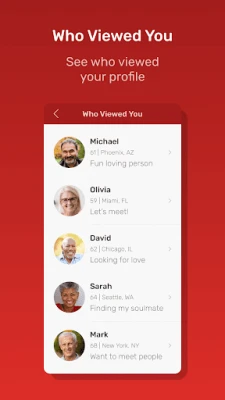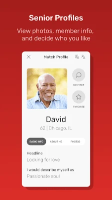 The Dating for Seniors app also has additional features to find mature men and women to chat with: