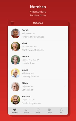3. Check out your matches feed. This will show you mature seniors near you to meet.