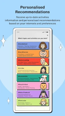 Stay on top with up-to-date information on activities and events tailored to your interests and location. With personalised recommendations, you'll never miss out on the exciting opportunities in your neighborhood. Simply select your district and choose from our eight information categories to stay connected to what you love and the latest happenings. Don’t forget to enable the app notifications and stay connected to the pulse of youths.