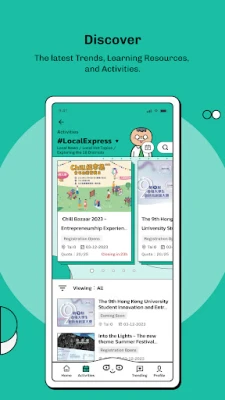 When you first embark on your HKYouth+ journey, be sure to explore the three main zones: Trending, Learning Resources, and Activities. Diverse information and exposure opportunities are here for you to discover and experience - all at your fingertips!