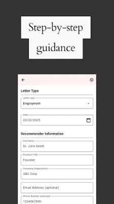 Whether you need a recommendation letter for a job application, an academic admission, a scholarship, an internship, or any other purpose, our app provides a versatile solution. Stop struggling with writing recommendation letters from scratch. Download our app today and create professional, personalized letters in no time!"