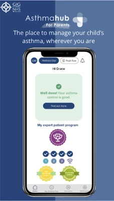 The official NHS Wales digital asthma action plan, shown to increase patient wellness and decrease GP and A&E visits in those who use the app regularly.
