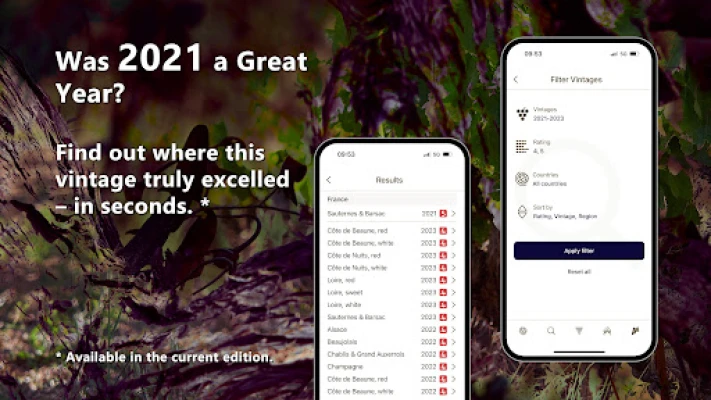 Want to see where the 2012 vintage scored particularly high? It’s simple with the filter function! Just select your preferred year, and let the app show you the best-rated regions. 🍷